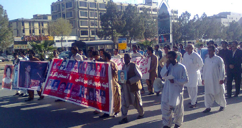 اسلام آباد آوار جتگیں بلوچانی پدّرکنّگ ءِ درگتءَ وائس فار مسسنگ پرسنز ءِ اجتجاجی روانک(ریلی)ءِ نیشنل پریس کلب تاں تاں پارلیمنٹ ھاوس اسلام آبادءَ Friday, March 19, 2010( فوٹو طارق بلوچ)