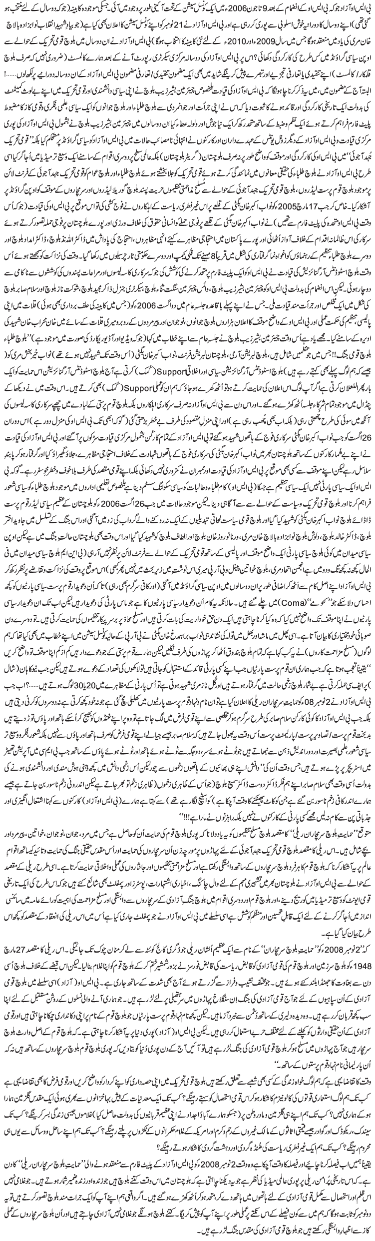 بی ایس او آزات کی حمایتِ سرمچاراں ریلی