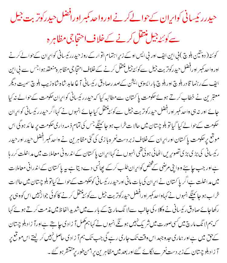 بلوچ ء کلین سرڈکارے انت و نہ چا اے حکومت حقانی دیگ ء مطالبہ ئے است۔
